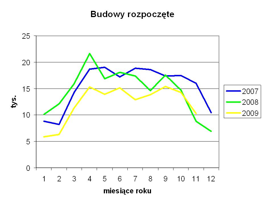 Niższe ilości wydanych pozwoleń budowlanych nie miały jeszcze znacznego przełożenia na spadek rozpoczętych budów: