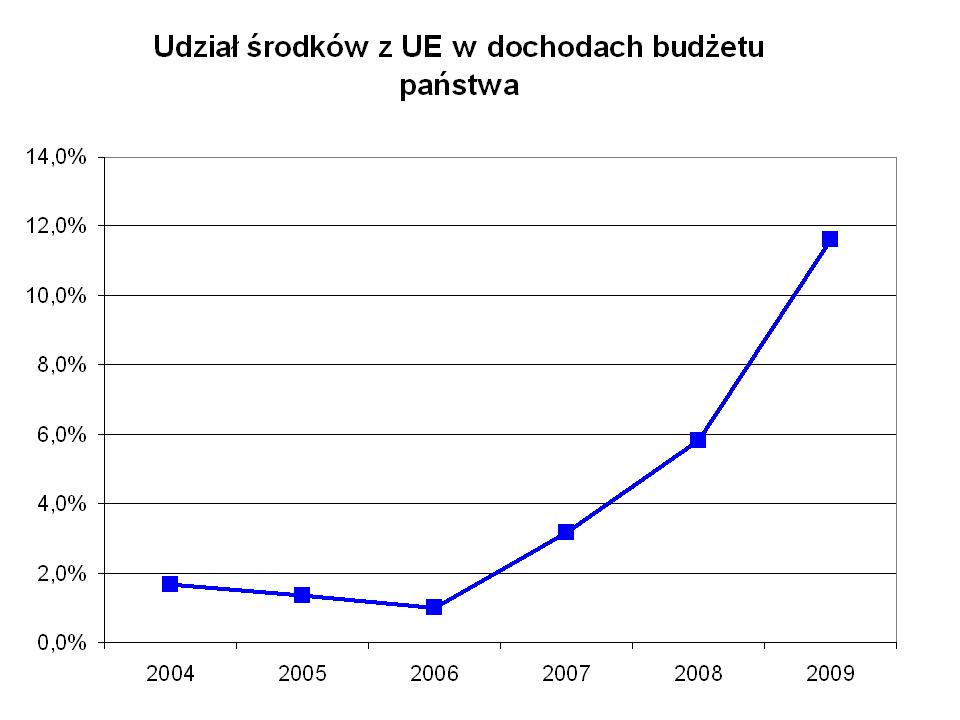 Po drugie udział dotacje z UE w dochodach naszego budżetu:
