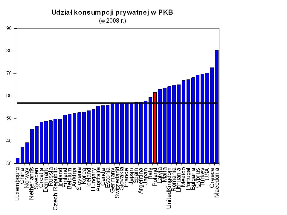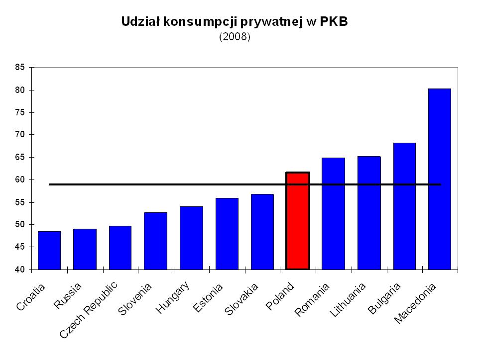 Polska liderem konsumpcji – Choć my Polacy jesteśmy na dorobku, to wśród narodów świata jesteśmy jednym z liderów konsumpcji. Konsumpcja jako procent PKB jest w Polsce ponadprzeciętnie wysoka.