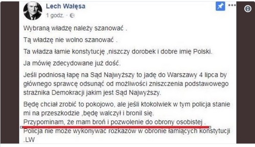 PiS właśnie zmienił ustrój sądów ustawą. Mógł zmienić wiek przejścia sędziów w stan spoczynku i zmienił. Ustawy w Polsce są zgodne z konstytucją dopóki o ich niezgodności nie orzeknie Trybunał Konstytucyjny. Na razie ustawa o zmianie wieku jest zgodna z konstytucją. To, że jednej stronie sporu nie podoba się obecny skład Trybunału, jest faktem politycznym, ale nie jest argumentem z prawa. Tłumy przed Sądem Najwyższym czy Wałęsą grożący użyciem broni palnej są argumentem siły politycznej, nie argumentem z prawa.